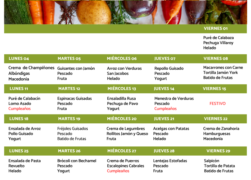 Durante todo el mes de agosto, los usuarios de Sonraíz disfrutarán de platos caseros que combinan tradición y equilibrio nutricional. Incorporamos verduras de temporada, pescados, legumbres y opciones ligeras ideales para combatir el calor, sin dejar de lado los sabores familiares que tanto reconfortan.