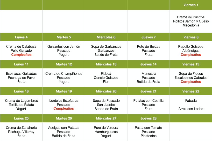 En este mes son habituales los resfriados y catarros. La tos y la congestión nasal, además de otras molestias propias del frío nos afecta a todos. En Sonraíz pensamos que una buena forma de prevenir todo ello es a través de una buena alimentación. Por eso el menú mensual está compuesto por platos ricos y sabrosos, y que además tienen un aporte extra para ayudar a las defensas de nuestros usuarios.