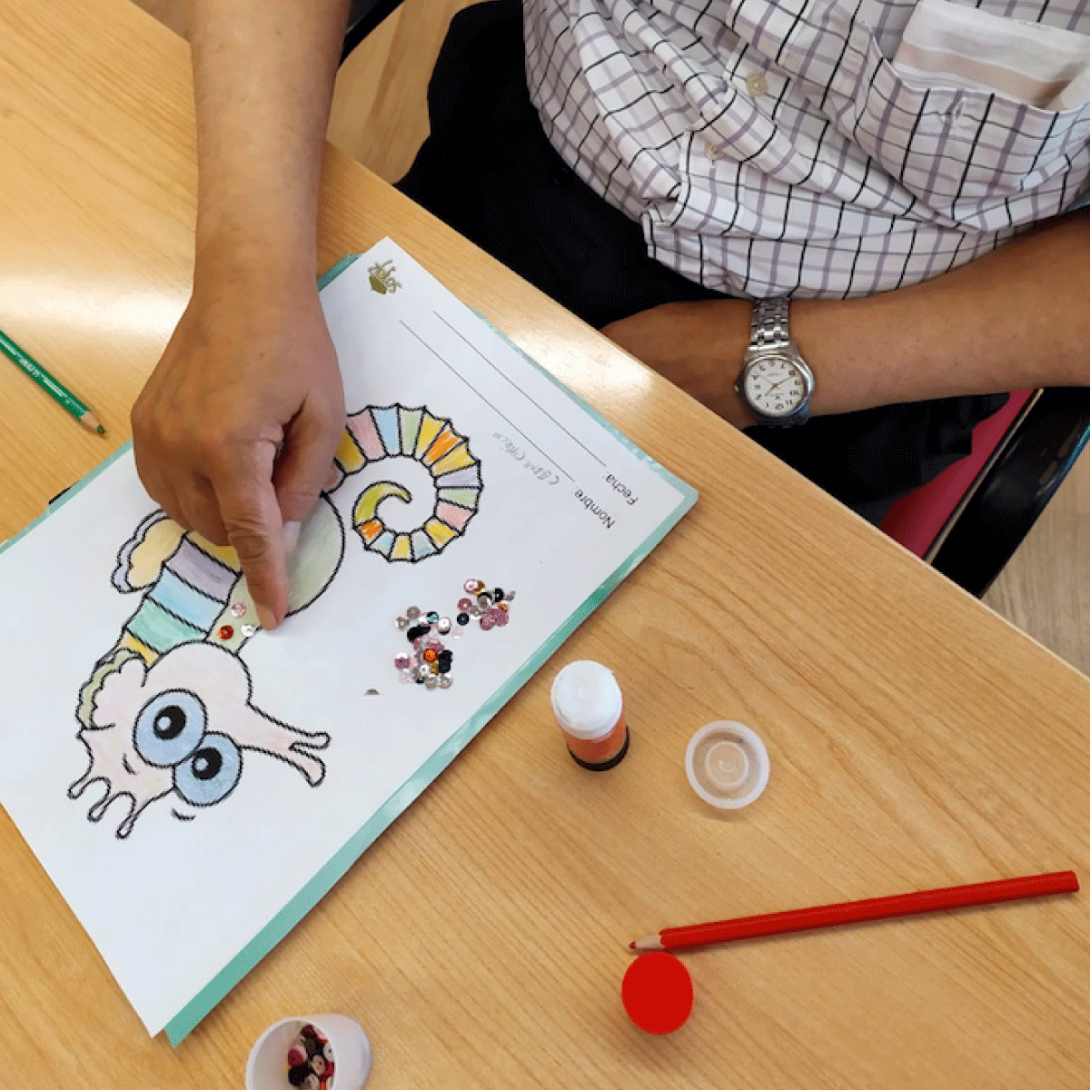 En Sonraíz hacemos que nuestros usuarios se mantengan activos en su día a día dejando volar su mente y que sea la mano quien lleve las riendas por un momento. La última manualidad realizada constaba de colorear un caballito de mar además de decorarlo pegando lentejuelas para a continuación recortarlo.