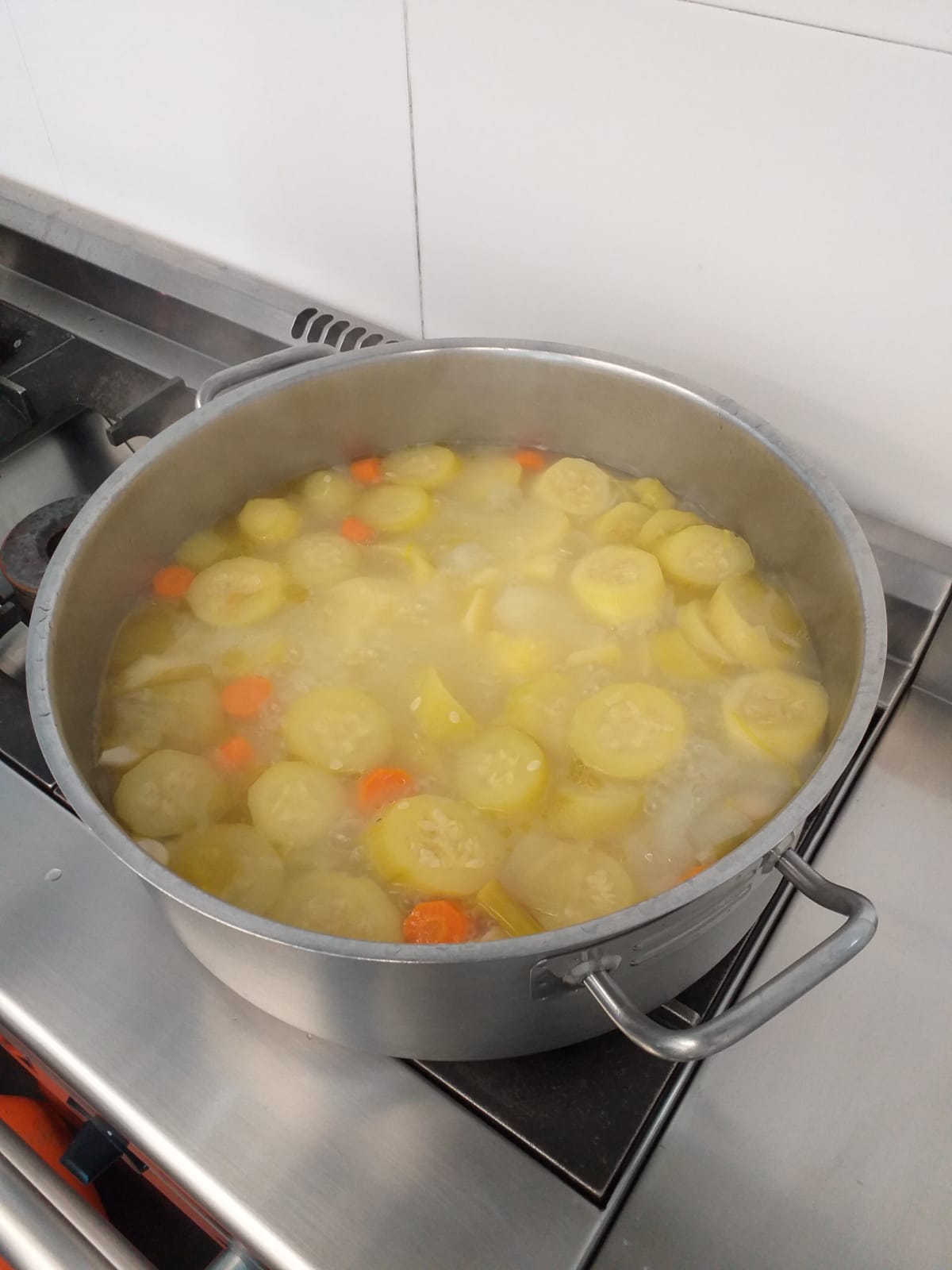 5º Aunque lo lógico sería echar la sal en el momento de la cocción, en nuestro caso, tenemos usuarios que deben comer sin nada de sal. Para ellos serviríamos sus platos, y echaríamos sal al resto de usuarios que si la consumen.
