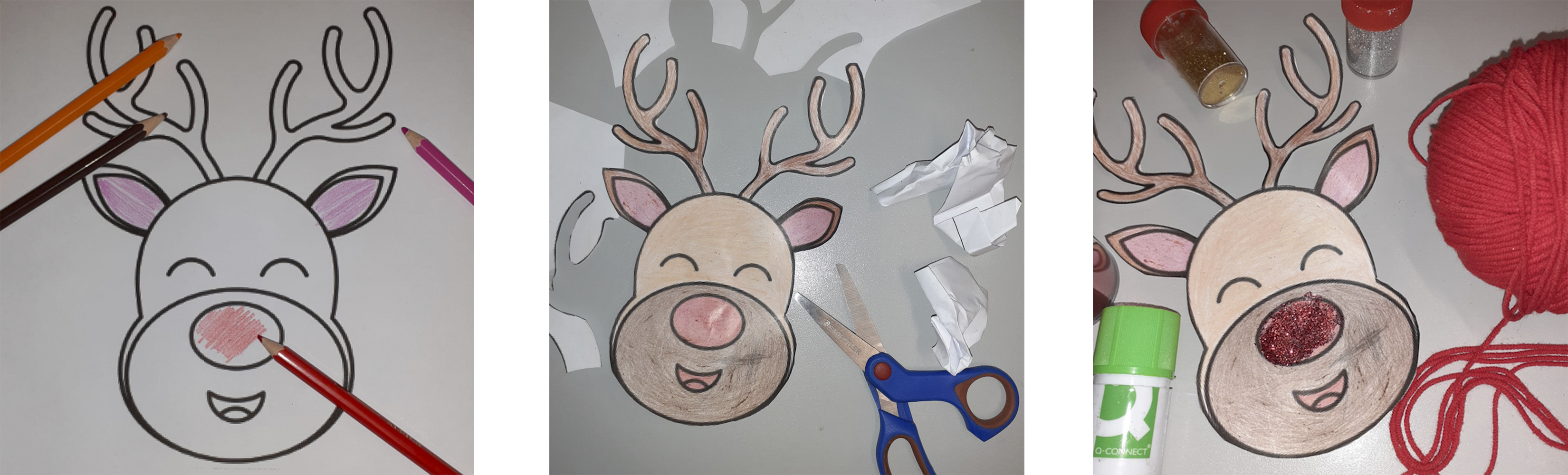 La Navidad ya están ahí y con motivo de ella, hemos decidido colorear la cabeza de un reno para a continuación recortarlo y decorarlo. Una vez estén terminados se les introduce un trozo de lana para colgarlos en el árbol de navidad de nuestro centro.
