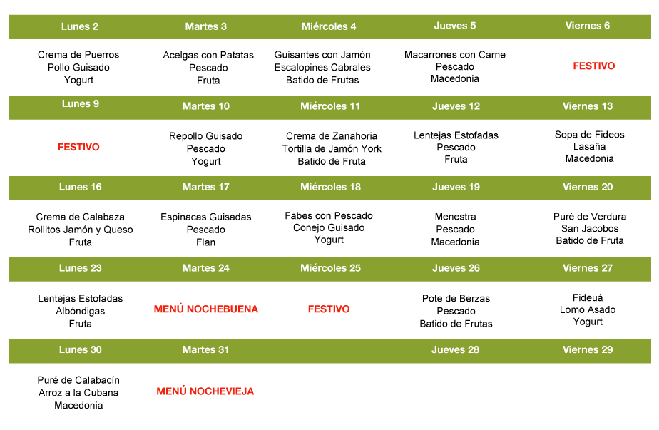 Como cada mes, nos gusta compartir con vosotros el menú que se servirá en nuestras mesas durante el mes de diciembre.