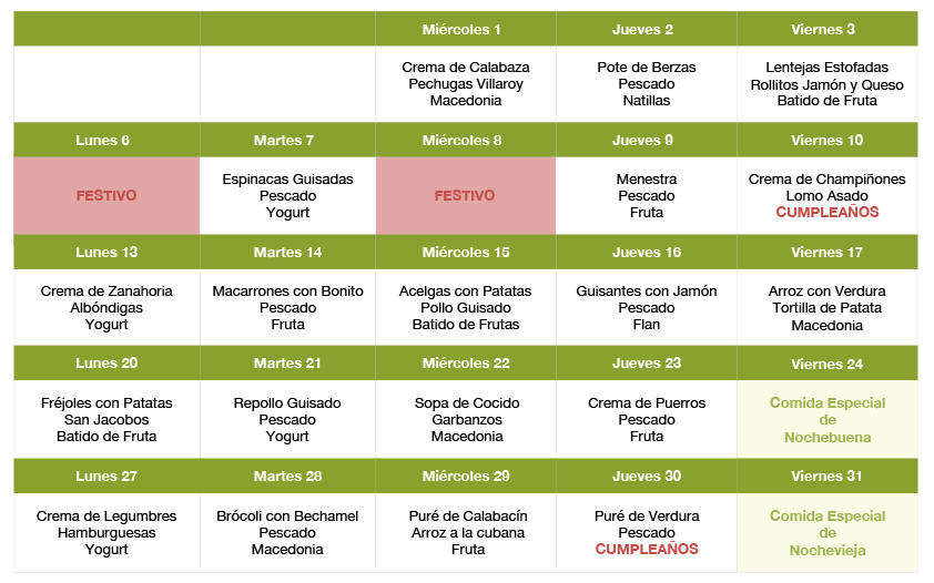 El frío ha llegado a Centro de Día Sonraíz y para hacerle frente, este mes nuestra mesa se llena de platos cálidos que hacen las delicias de cualquiera. Nadie puede resistirse a un buen pote o a un estofado caliente y eso lo sabe bien nuestro equipo de nutrición y cocina que ha elegido, para este mes de diciembre, una selección de guisos, potes y cremas para darle la bienvenida al invierno.