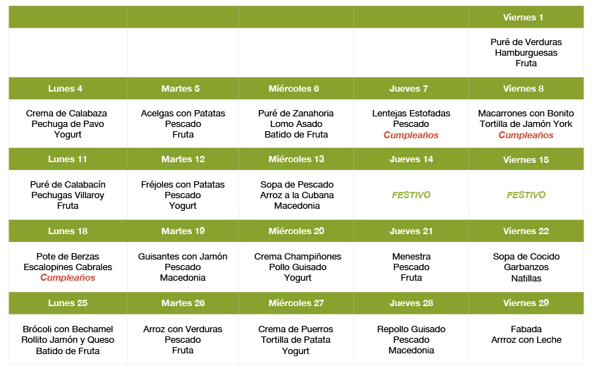 En este centro de día contamos con cocina en nuestras instalaciones por lo que nos es muy sencillo adaptar cada uno de los platos a las necesidades y gustos de cada usuario. Si tienes alguna duda o comentario que hacernos te atenderemos encantados en el teléfono 984 491 822 o en el correo electrónico Esta dirección de correo electrónico está siendo protegida contra los robots de spam. Necesita tener JavaScript habilitado para poder verlo.. Por la situación actual no es posible hacerlo de manera presencial en nuestras instalaciones.