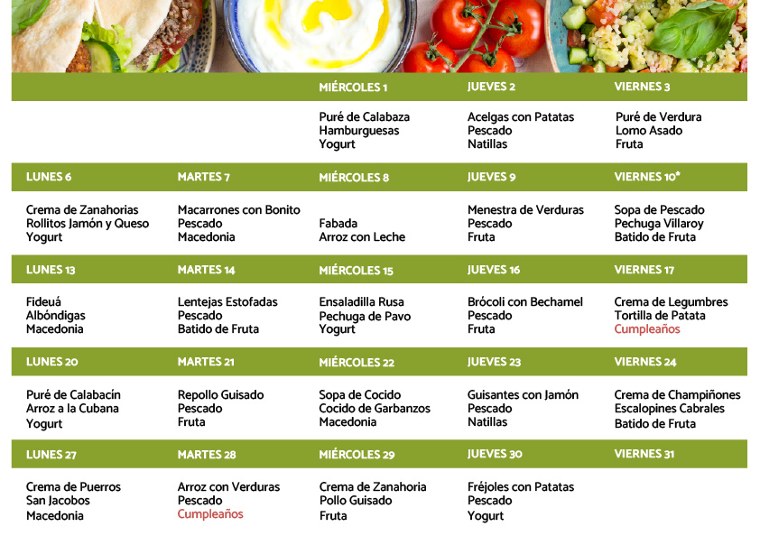 ¿Quieres saber qué comeremos en las próximas semanas? Aquí tienes el menú
